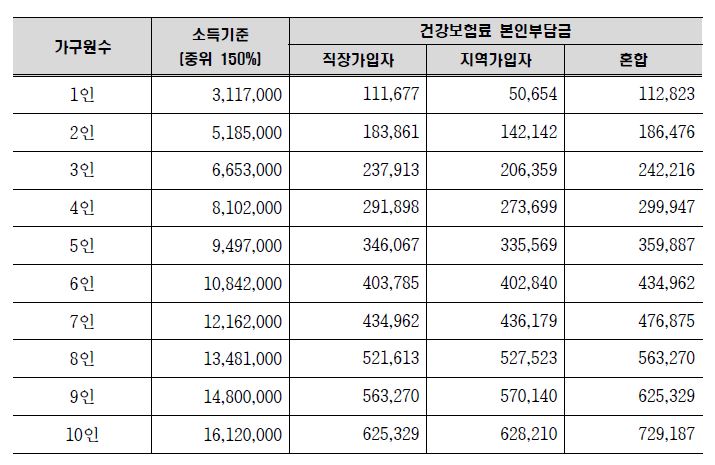 3. 소득중위소득 150% 이하 : 건강보험료부과액 기준