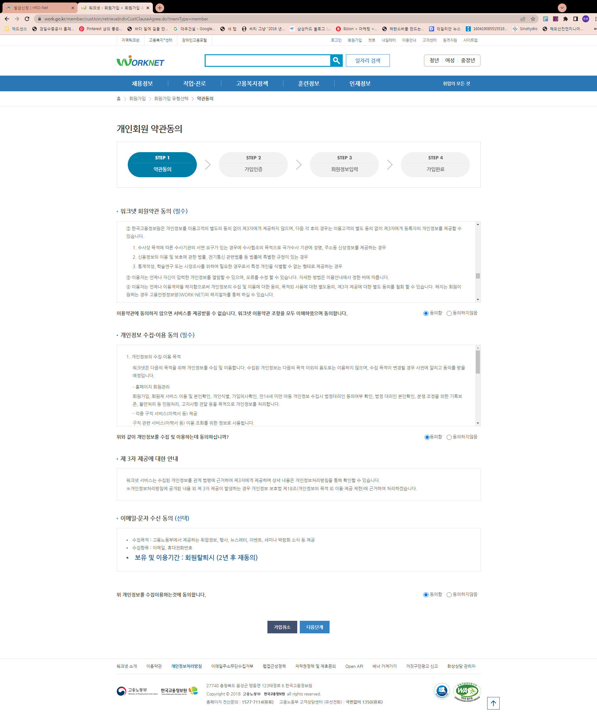 워크넷 회원가입하기